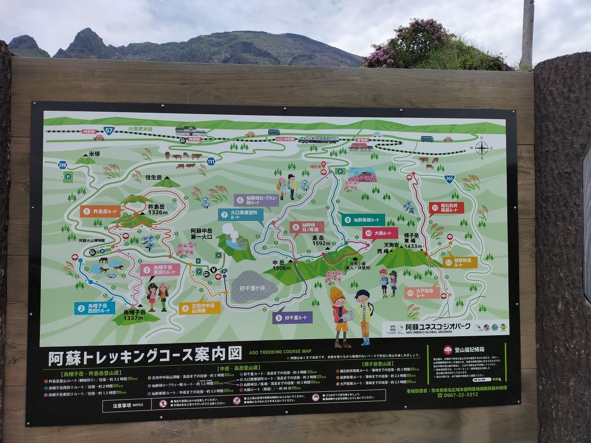 仙酔峡には一周30分ほどでちょっとした周遊ができる遊歩道がある。花を見るだけなら山登りというよりは、お気軽なハイキングコース。もちろん、ここから阿蘇山の頂に登ることもできる。