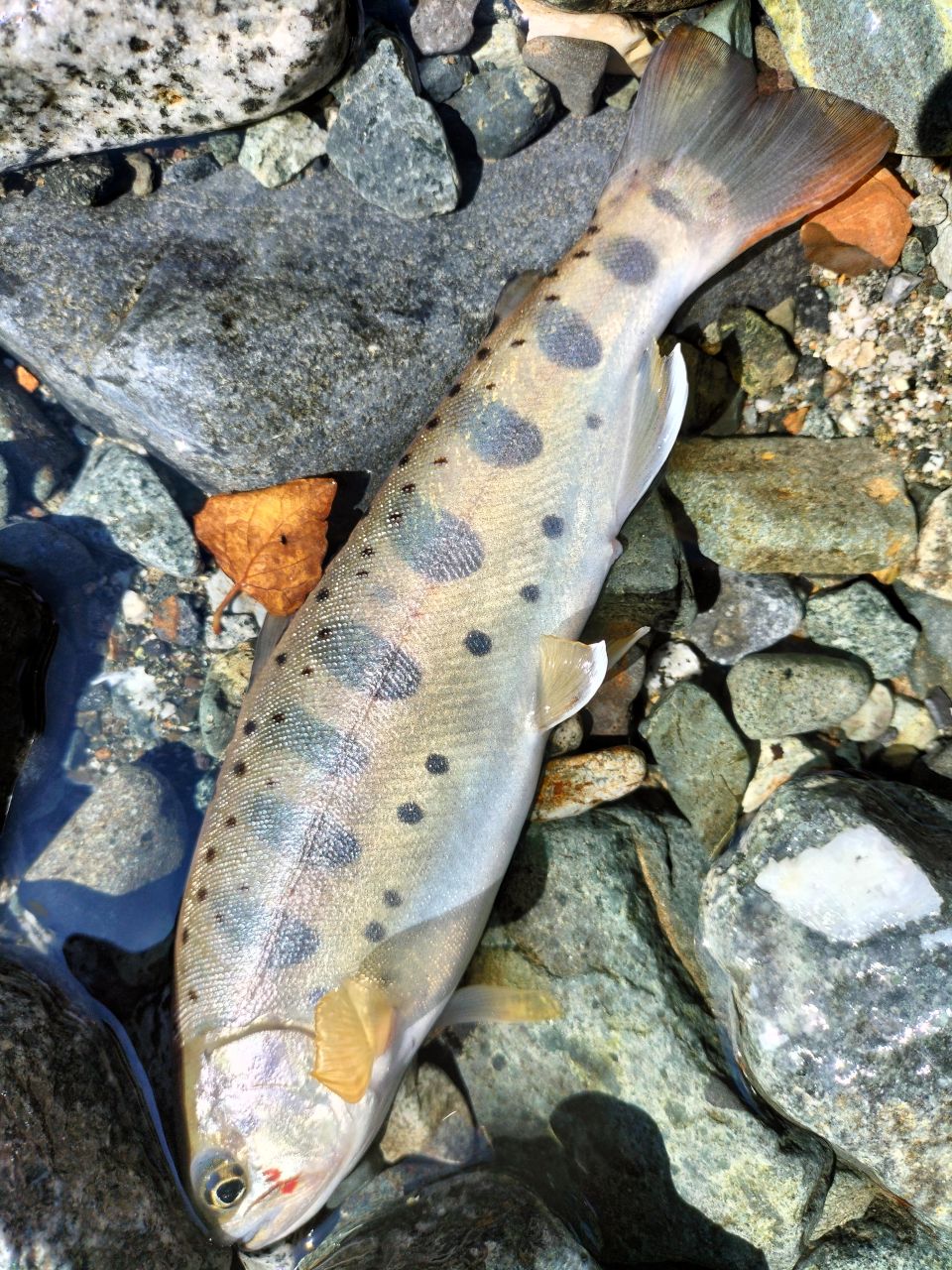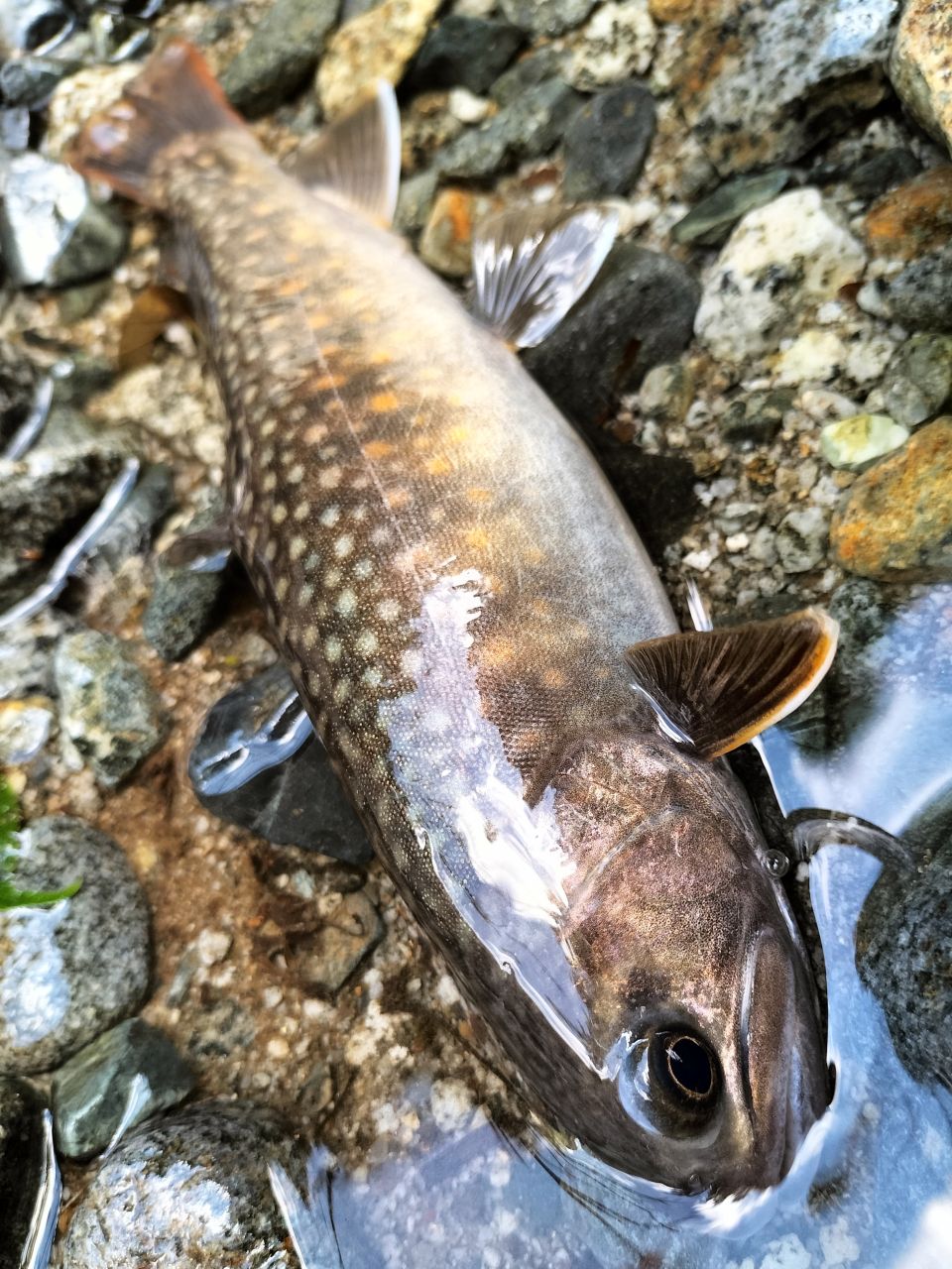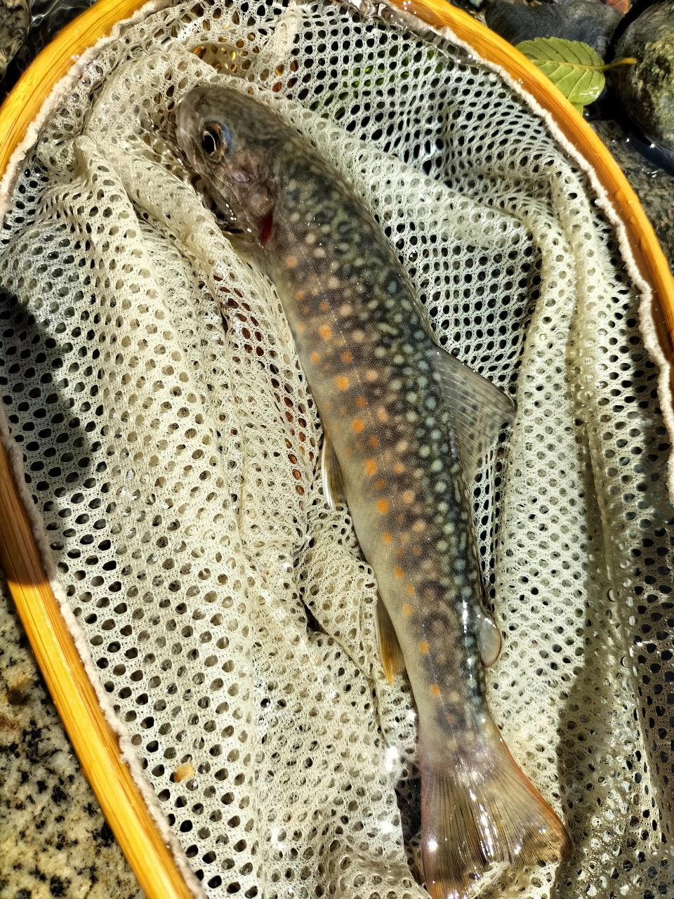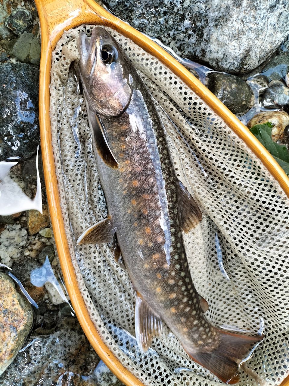 ちょっとサバっぽい背中の模様のイワナ。きれいな個体。