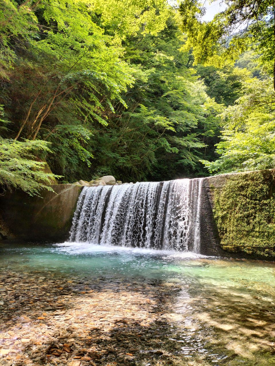 出発地点から三つ目の堰堤。前回6年前と同じく、それぞれの堰堤下ではどこも全く当たりがなかった。水深があるところでは深場で水生昆虫を捕っているのかな?